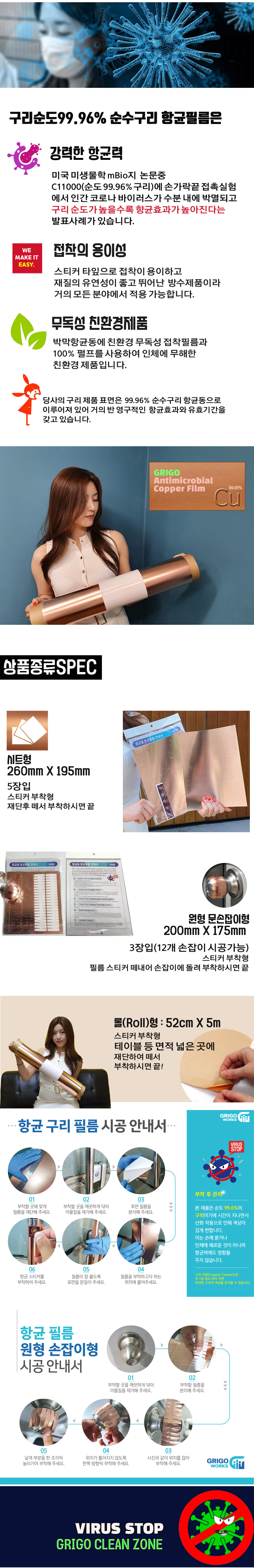 Made with Copper C11000 (99.96% purity), an adhesive film, and pulp, this eco-friendly non-toxic antimicrobial film can cover any surface completely, making it the strongest, permanent antimicrobial film.